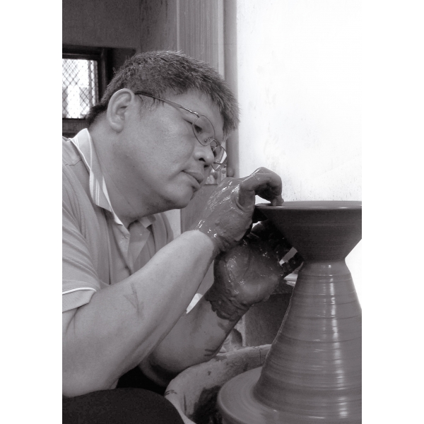每一次創作天目,都是一段無聲的對話過程。通常,需要一些時間讓心靈沈澱。用手,去聆 聽轆轤與陶土之間的絮語。用眼,去採擷隱匿在釉藥裡頭的色彩。用心,去感受在窯心起舞 的熊熊烈焰。心無旁騖完成每個步驟,屏氣凝神等待最後乍現的時刻,這不僅是陶人的執著 與癡迷,也是對微塵化聚大地萬物的深層想。