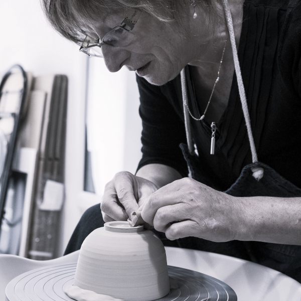 陶藝是一條漫長的道路,需要不斷研究與對技藝的掌握。她的作品以 1280°C 高溫燒成,皆產自她位於聖索爾南勒拉克(St Sornin Leulac)——這座距離法國利摩日 50 公里的小村莊中的工作室。