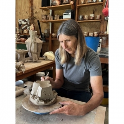 For me a tea bowl is probably one of the most fascinating things to make. It is an object of appreciation and contemplation allowing aunique combination of functional and sculptural elements. While a tea bowl should be well made, pleasant to hold, and use, my aim inmaking a tea bowl is not perfection; on the contrary, it is the imperfections that make the bowl come alive, that make it easier to relateto, that make it more human. My bowls are either loosely wheel-thrown or hand-carved,then decorated with an iron slip in quick, gestural movements. They are partially glazed in a shino style glaze and fired in my wood kiln for about 15 hours.