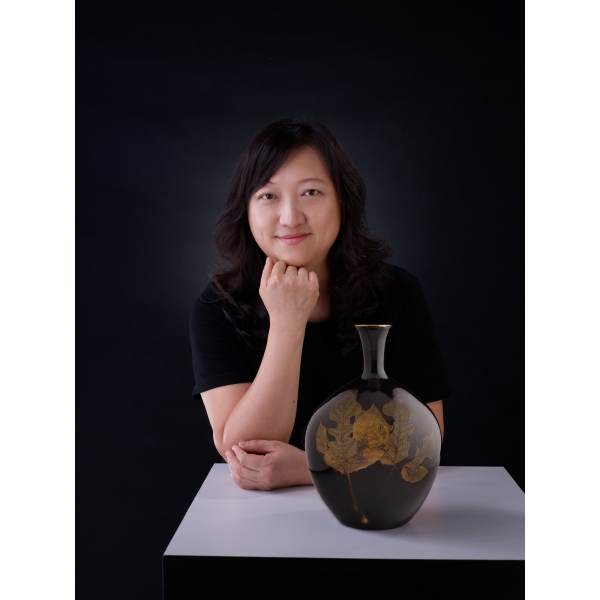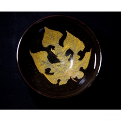 傳統的木葉天目作品多以黑色天目釉、單片木葉、燒製於茶盞底部來呈現,而近年鑽研木葉天目燒製的黃玉英卻帶來許多令人眼睛一亮的創新突破。