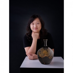 首先她的天目釉色多變,除了傳統的黑色,她推出了寶石紅、翡翠綠、和麥田金,甚至還跨出了天目釉的範疇,燒製出以青瓷、銅紅、鈞窯紫為底色的木葉作品,大大提升了木葉天目的釉色變化性。